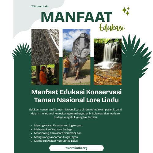 Edukasi konservasi di Taman Nasional Lore Lindu sangat penting karena kawasan ini merupakan rumah bagi keanekaragaman hayati unik di garis Wallacea, termasuk spesies endemik seperti anoa, babirusa, dan burung maleo, serta situs megalitik bersejarah yang tak ternilai. Melalui edukasi, masyarakat lokal, wisatawan, dan generasi muda dapat memahami pentingnya menjaga ekosistem hutan pegunungan dan warisan budaya, mendorong praktik berkelanjutan, serta mengurangi ancaman seperti perambahan hutan dan perburuan liar. Dengan kesadaran yang kuat, kita dapat memastikan kelestarian flora, fauna, dan budaya Lore Lindu untuk masa depan.