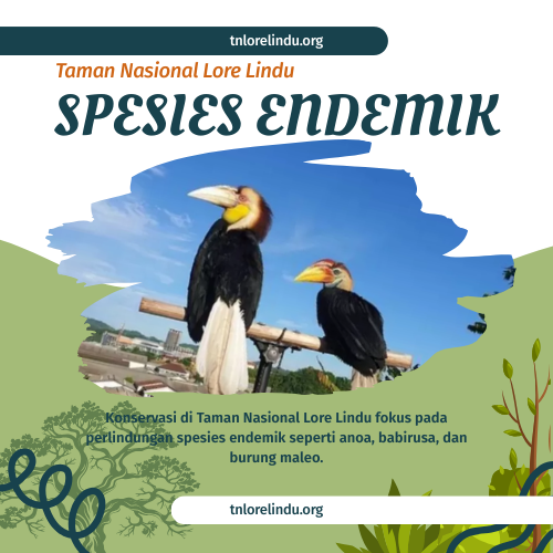 Konservasi di Taman Nasional Lore Lindu fokus pada perlindungan spesies endemik seperti anoa, babirusa, dan burung maleo. Melalui patroli hutan dan pemantauan biodiversitas, taman ini menjaga lebih dari 230 spesies burung dan 55 jenis kelelawar. Upaya ini memastikan kelestarian keanekaragaman hayati unik di garis Wallacea, mendukung ekosistem hutan pegunungan Sulawesi Tengah.